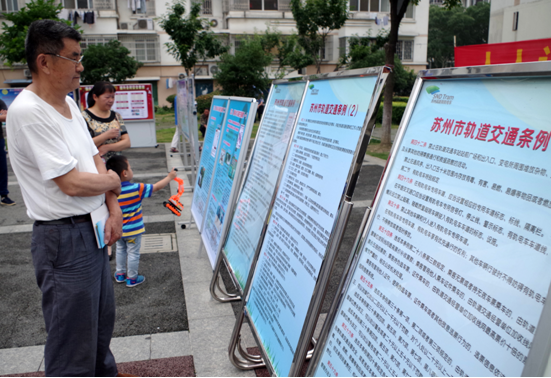 作者: 日期:2016-06-20 浏览:541为宣传普及安全生产方针政策、法律法规,围绕“强化安全发展观念,提升全民安全素质”主题,普及安全知识,提高人民群众安全意识,解答人民群众关心的安全热点问题,6月16日,苏州高新区安委会、安监局在高新区能安镇华通花园四区组织了一场安全生产月咨询日活动。全区安委会的成员单位齐聚一堂,踊跃参加,结合各单位特色,为当居民带来了一次生动的安全教育和咨询课。我公司基建部、运营分公司等也委派安全管理人员参加了本次活动,利用展板、宣传册、现场咨询等多种形式,向当地群众宣传苏州市轨道交通条例、工程建设安全知识以及消防常识等。
