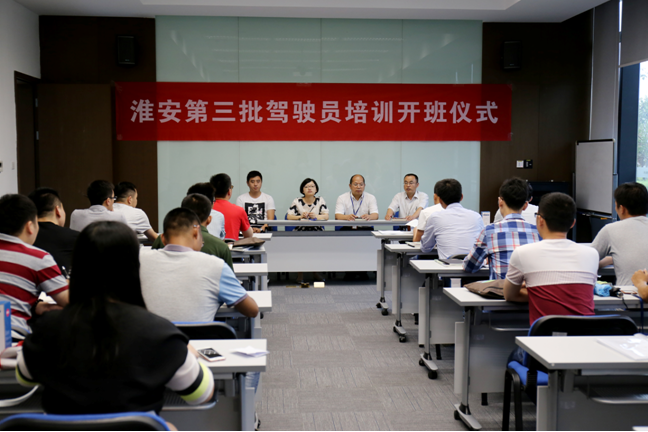 同日下午,淮安16名驾驶员学员如约到达培训基地,这也是淮安自2014年以来第三次将驾驶员学员送到苏州培训。会上,培训公司领导徐克强提出了对学员的期望,希望学员在接下来3个月中,学习生活顺利,并向他们之前的师哥师姐学习,认真培训,顺利取证。目前淮安有轨电车1号线已正式上线运营,此前培训公司已为其培养输送驾驶员63人。