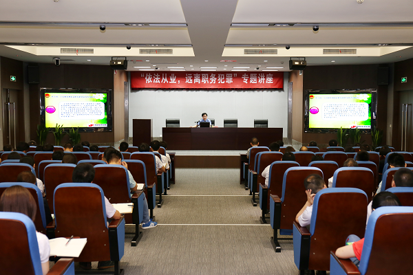作者: 日期:2016-06-29 浏览:5206月22日下午,公司党委邀请区检察院职务犯罪预防科厉建华科长为全体党员及非党员领导干部讲授题为“依法从业,远离职务犯罪”专题讲座,厉科长通过文字、图片、视频等各类影音资料,深刻阐述党员干部需加强党性修养,远离职务犯罪的重要性,广大党员深受启发。