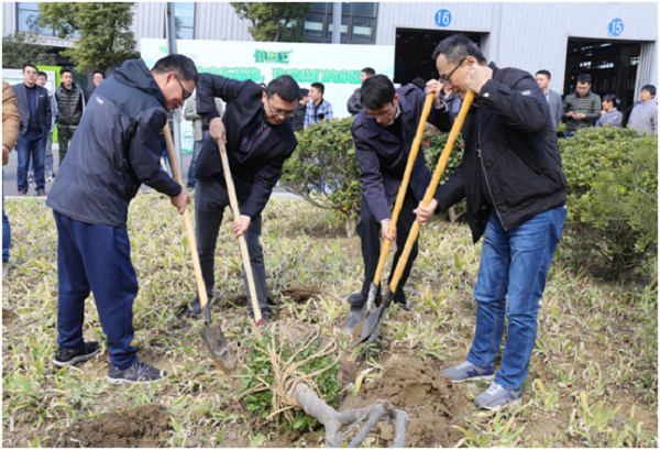 参加活动的同事们,个个热情高涨、干劲十足,三五人一组,分工合作,配合默契,挖坑扶树、培土浇水,每道工序有条不紊,一片热火朝天的劳动场景。经过一上午的努力,有轨电车公益林已经构成电车基地的一道靓丽风景线,大家还纷纷和自己亲手栽种的树苗合影留念,见证这些树苗的成长。