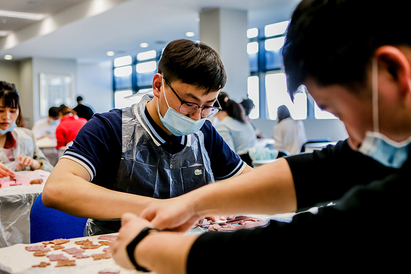 活动邀请了专业烘焙师,对烘焙制作饼干等进行了详细的讲解和示范,员工充分发挥想象力,使用模板制作出各式各样的饼干,在食材的碰撞和糅合里,在手艺的交流和切磋中,大家增进了沟通、交流,增进了各部门之间的情谊。在等待烤制成熟的期间,烘焙师还分享了各类烘焙小知识,大家均收获满满。